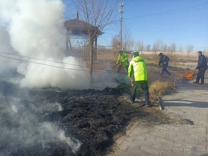 火被扑灭后,为防止枯草复燃,执勤民警再次对着火点进行仔细检查,在确保无复燃的可能后,这才放心地撤离现场。